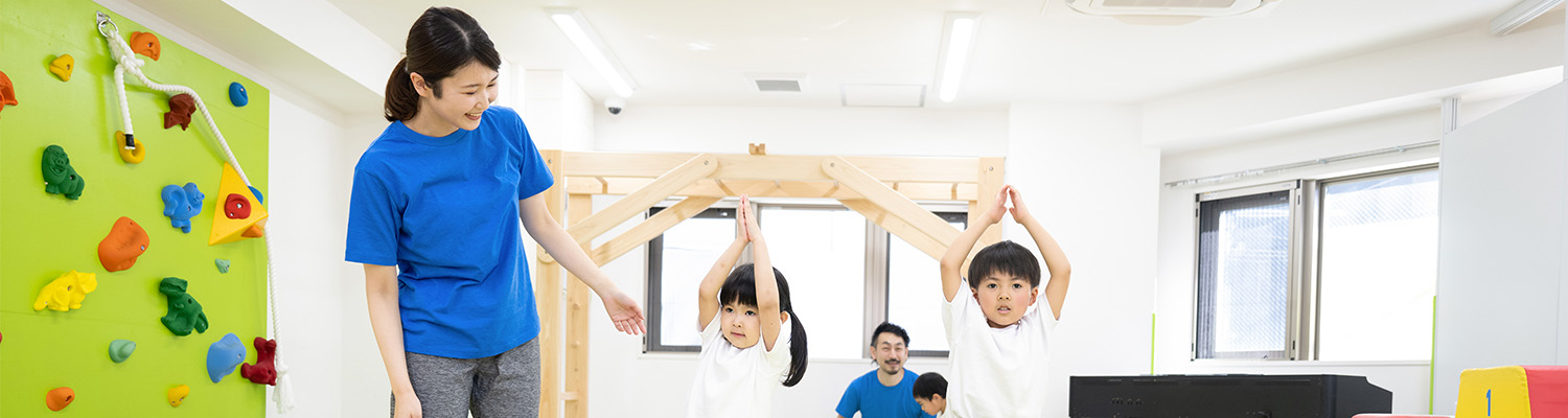 レイズ体操クラブのカリキュラムを取り入れ、トランポリン・鉄棒や跳び箱などの体操を通じて運動感覚を向上させ、お子様の脳や心の発達を目指しています。笑顔溢れるやりがいのある職場です。私たちと一緒に支援の道を歩み始めましょう!